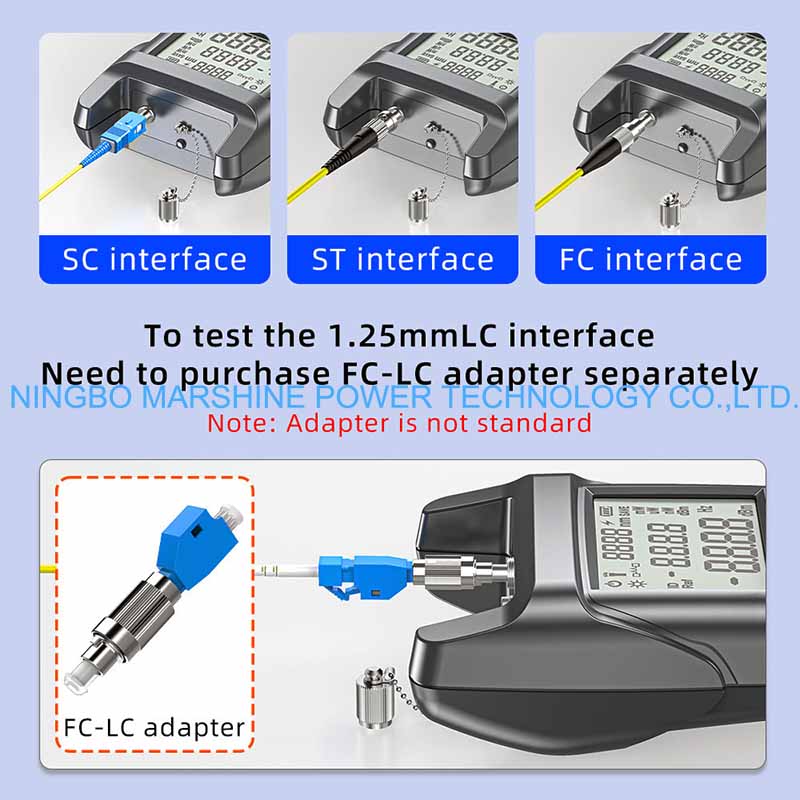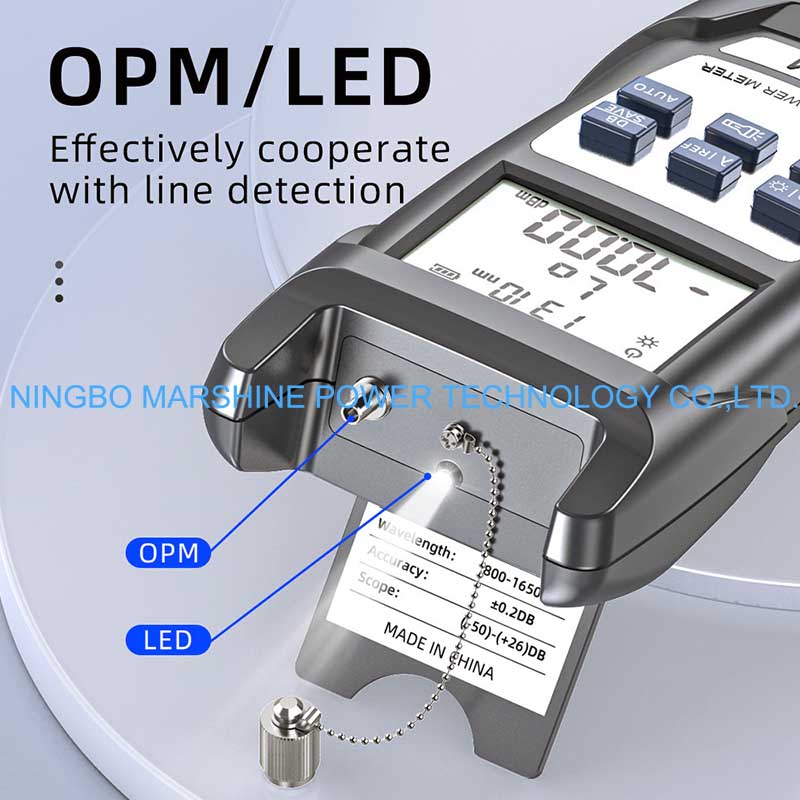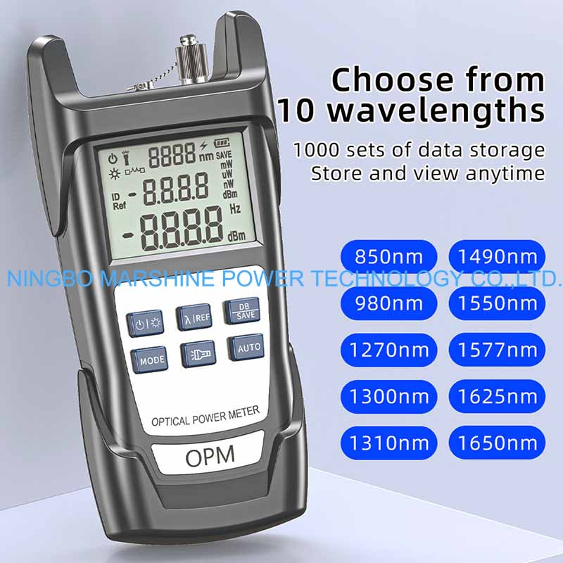 Il tester OPM del misuratore di potenza dello strumento di risoluzione dei problemi in fibra ottica MARSHINE può essere utilizzato per eseguire test su tutte le lunghezze d'onda ottiche standard della rete in fibra (ad esempio 850 nm, 1310 nm, 1490 nm e 1550 nm), applicabili sia a modalità multimodale che monomodale.