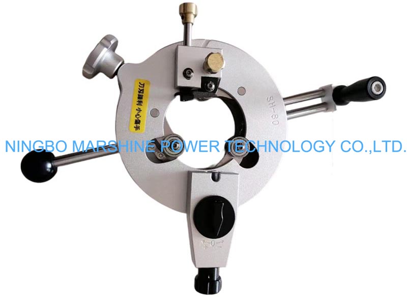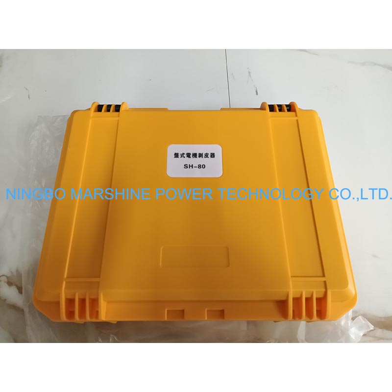 Lo spelacavi manuale multifunzionale MARSHINE SH-80 serve per spelare il cavo con diametro compreso tra 40 mm e 80 mm. La sua profondità massima di spelatura è di 1,5 mm nello strato semiconduttore e la lunghezza di spelatura nello strato semiconduttore esterno può arrivare fino a 50 mm, il che può consentire un'efficace preparazione della terminazione. La profondità del taglio sull'isolamento principale è regolabile da 0 a 20 mm a seconda del tipo di guaina del cavo. La dimensione dello strumento è di circa 345*435*165 mm, che è compatta e facile da tenere in campo mobile.
