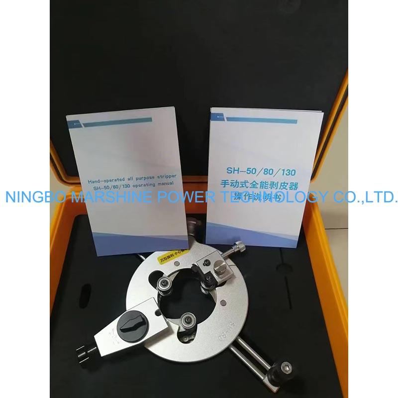 Questo spelafili è perfetto per lavori su linee di trasmissione ad alta tensione, rimuovendo lo strato di semiconduttore e l'isolamento principale in modo rapido e preciso. Può essere utilizzato anche in sottostazioni o produttori di quadri elettrici per preparare i cavi con nucleo grande alla morsettiera o al connettore. Lo spellacavi manuale multifunzionale MARSHINE SH-80 è progettato per i guardalinee delle compagnie elettriche che lavorano su terminazioni di conduttori da 10 kV a 220 kV.