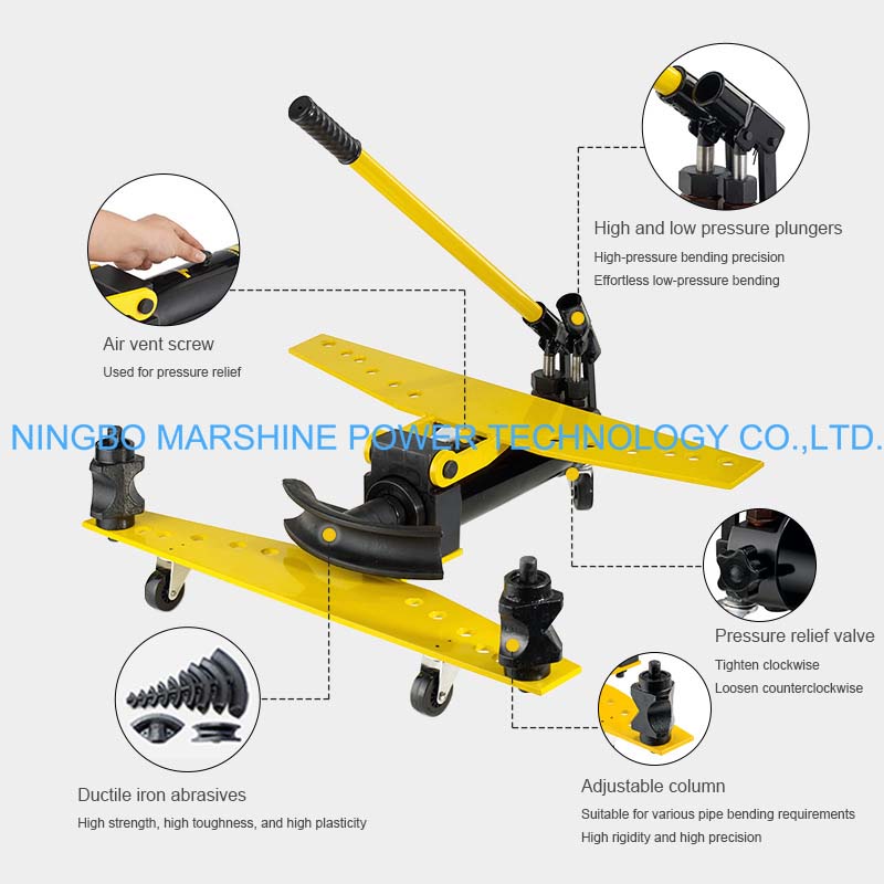Questa attrezzatura per la piegatura di tubi idraulici di tipo manuale MARSHINE SWG consente una varietà di matrici di piegatura per vari diametri di tubi utilizzati nell'edilizia e nei lavori elettrici, ecc.