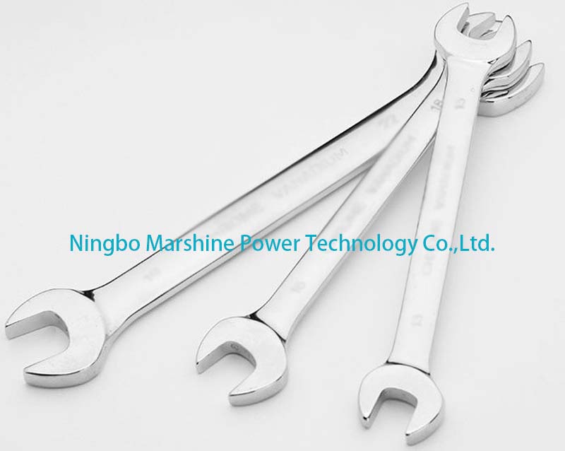 Ecco la nostra sede a doppia fascia a doppia estremità aperta marshine, che è uno strumento versatile ma compatto che può garantire il serraggio preciso ed efficiente o l'allentamento dei dadi e dei bulloni negli spazi confinati. Questa Spanner combina la funzionalità di due chiavi a apertura in uno strumento, può offrire le doppie teste con le diverse dimensioni per soddisfare una vasta gamma dei requisiti di fissaggio. Il suo profilo sottile e il design ergonomico lo rendono adatto per elettricisti e operai che lavoravano nelle aree strette o difficili da raggiungere.